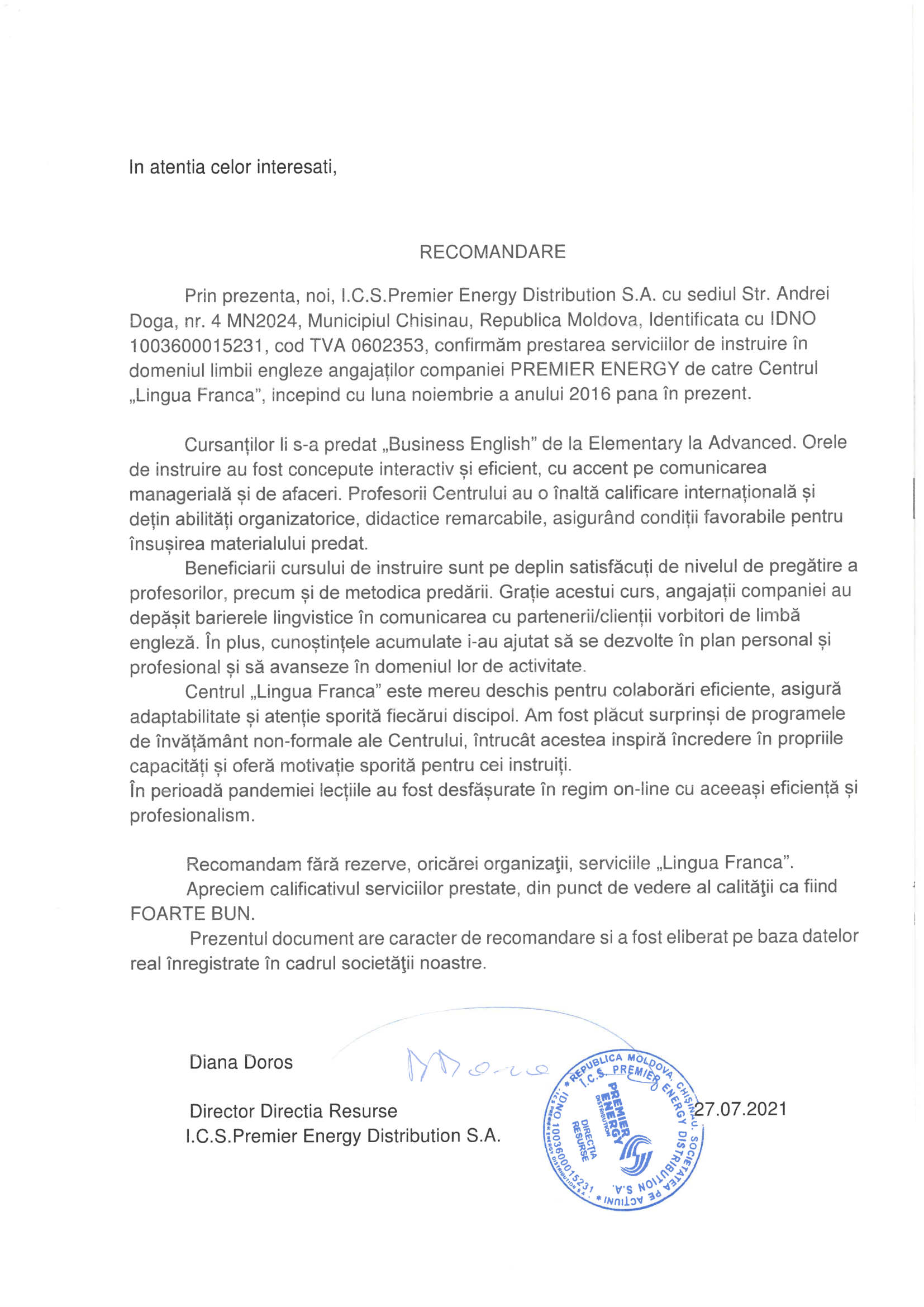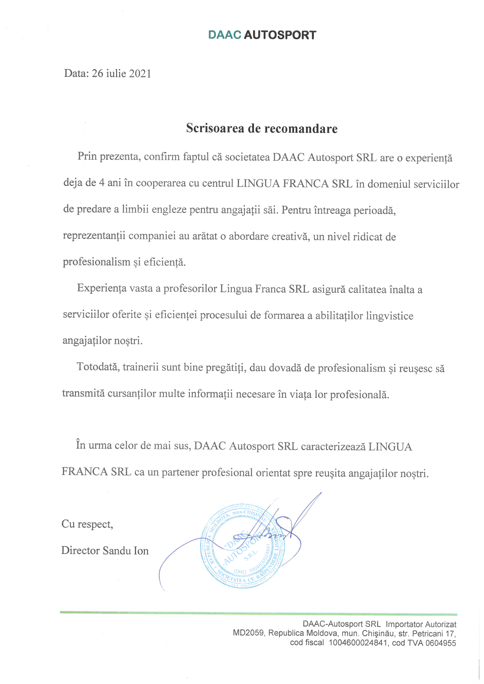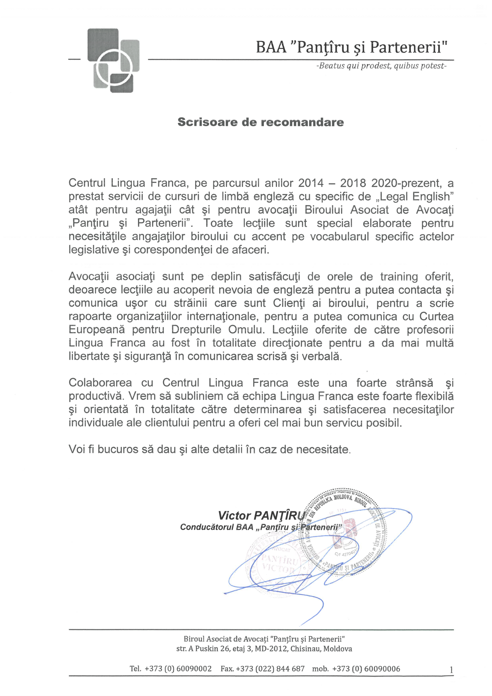 Pentru a face cunoștință cu scrisorile de recomandare primite de la partenerii noștri, vă rugăm să faceți clic pe elementele dinamice de pe această pagină.