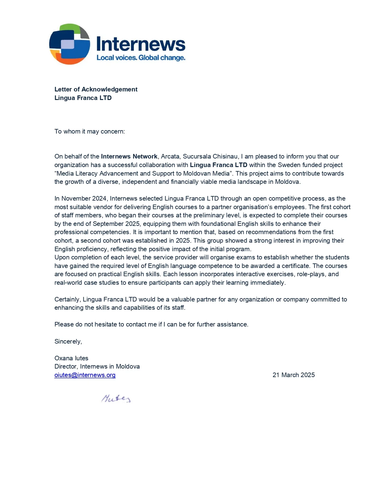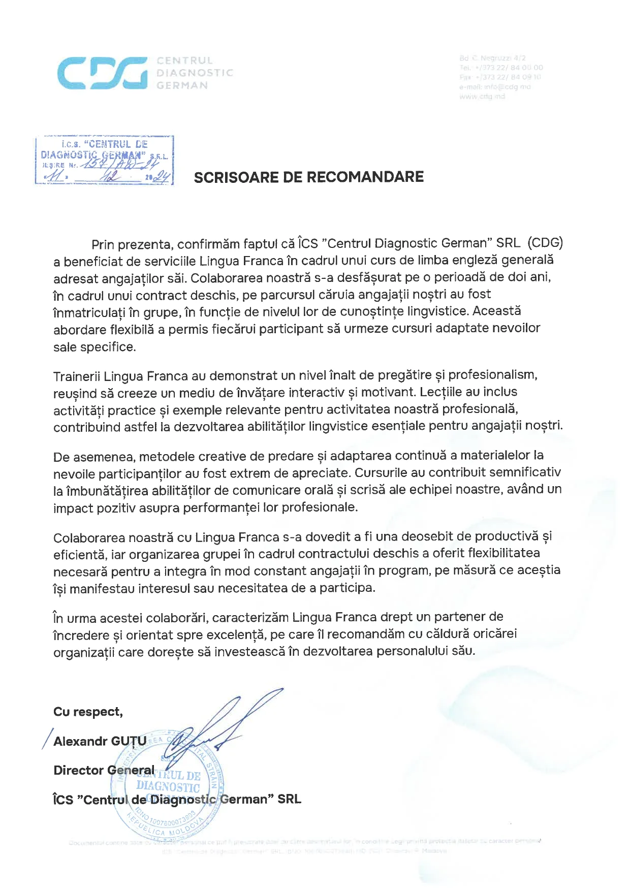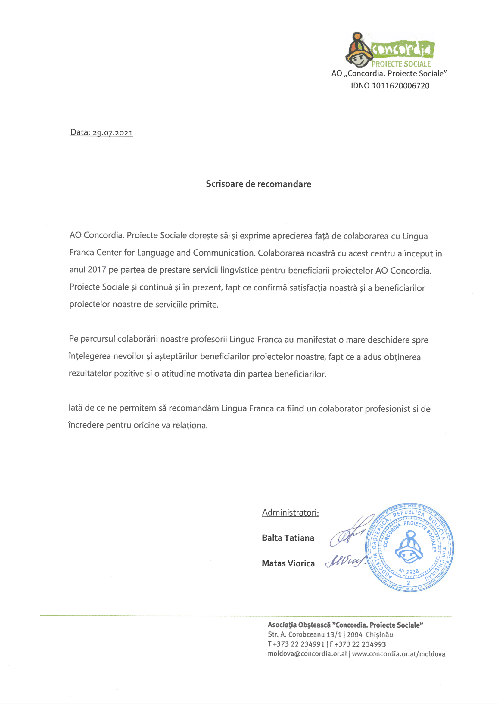Pentru a face cunoștință cu scrisorile de recomandare primite de la partenerii noștri, vă rugăm să faceți clic pe elementele dinamice de pe această pagină.